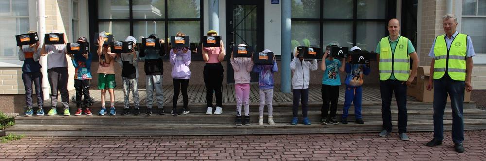 16.8.23 Uusi toimintakausi on alkanut ja Pusulan ala-asteen ekaluokkalaisille käytiin jakamassa pyöräilykypärät.